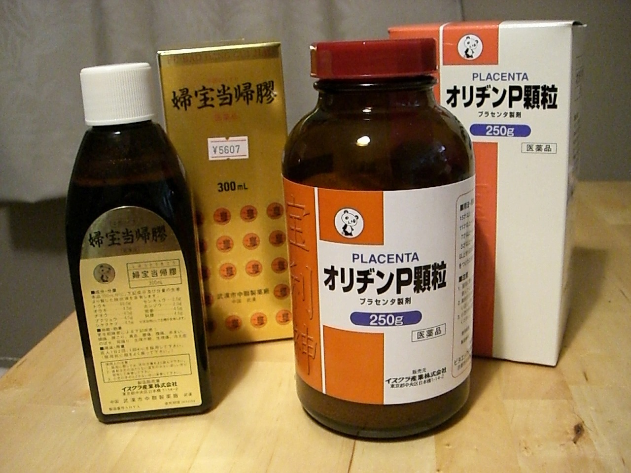 オリヂンP4匙、婦宝当帰膠10ml、当帰芍薬散4錠、桂枝茯苓丸加ヨクイニン2.5g