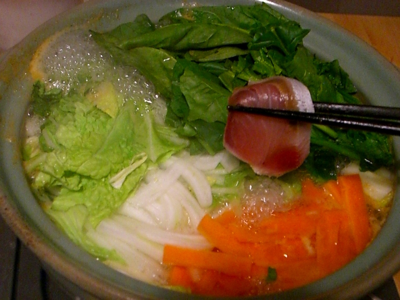 一緒に頂くのは、人参+白菜+葱+ほうれん草。