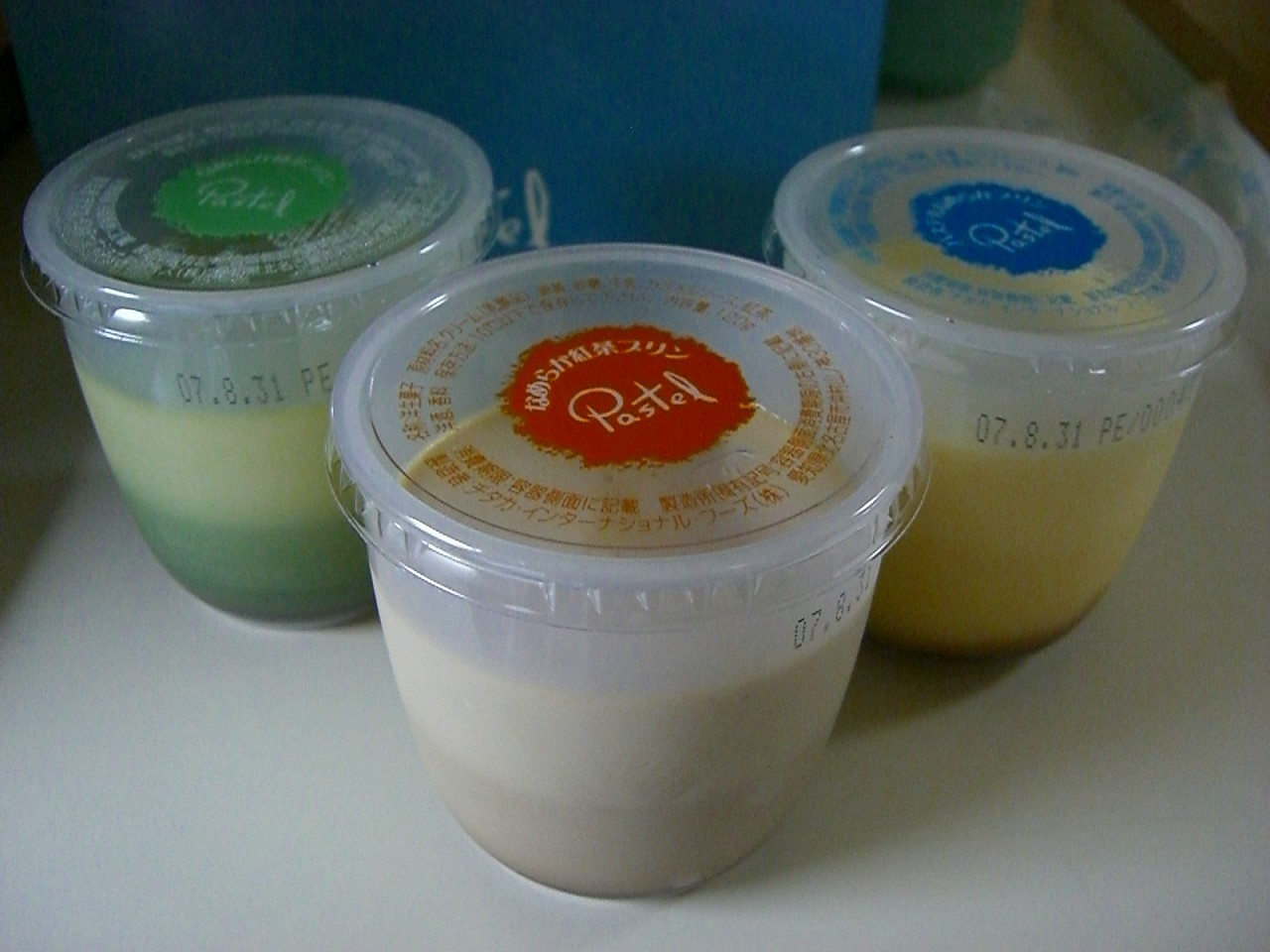 最後の夜には、親友ちゃんが大好物の『プリン』を買ってきてくれました。 パステルの紅茶プリンと抹茶プリン、普通のプリン⇒